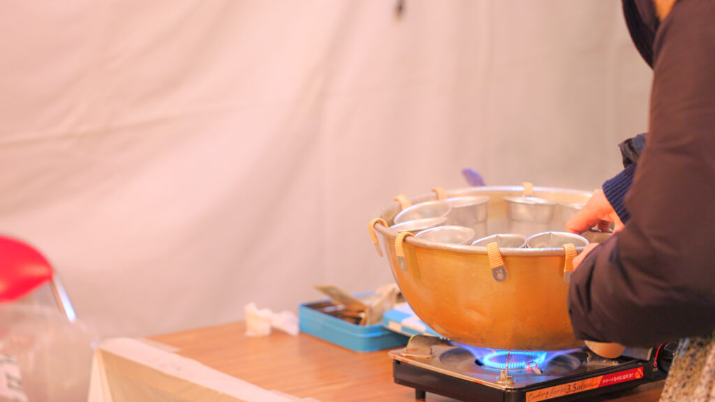 At Oji Inari Shrine, you can find Amazake (sweet fermented rice drink) and Oden (simmered hot pot). Warming your body with hot food on a cold night is a traditional Japanese cultural experience.