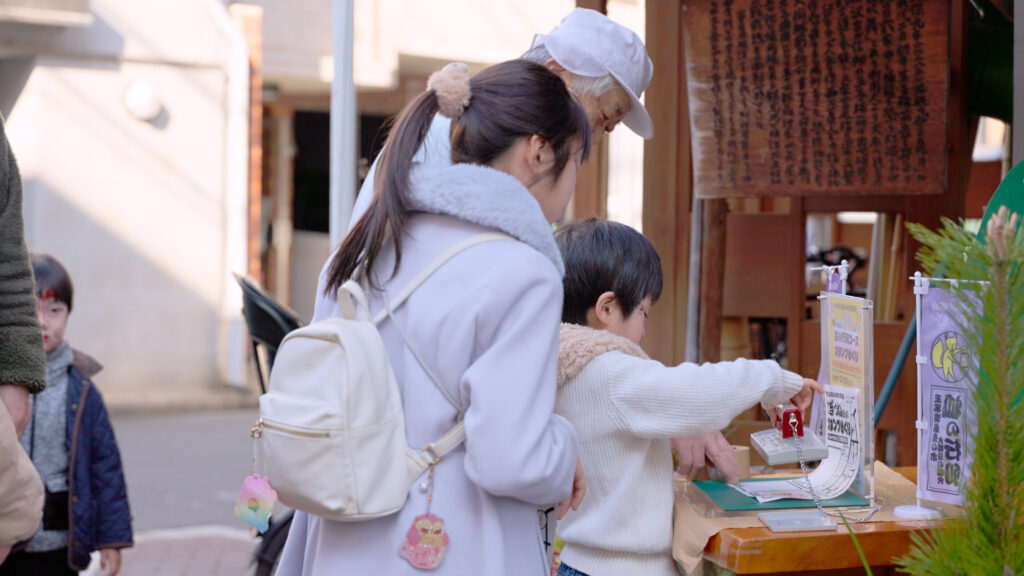 You collect stamps placed at historical sites in Oji, centering around Shozoku Inari Shrine and the shopping streets near the station.