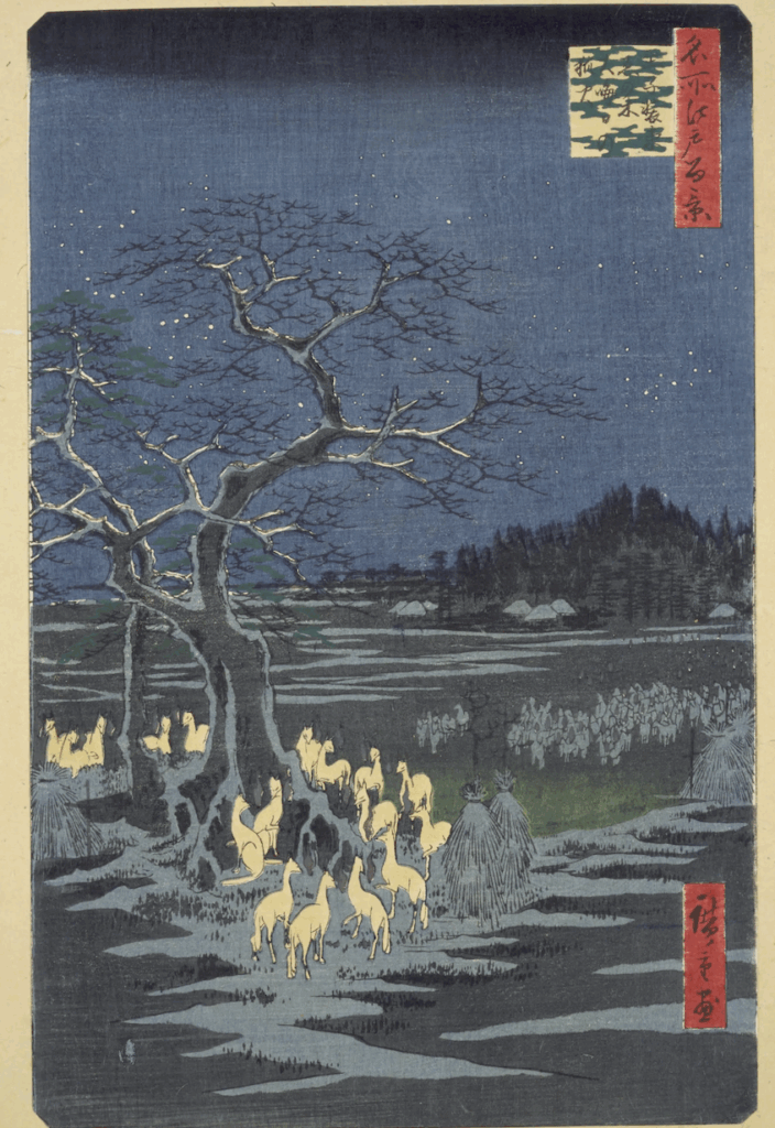 It depicted countless foxes gathering under a tree, breathing out foxfire. Farmers used to predict the next year’s harvest based on these fires.